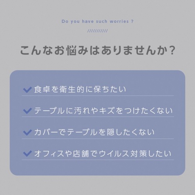 【使用上の注意】 ●開封時に材質特有の臭いがあります。 気になる場合は風通しのよいところで陰干ししてください。 ●光沢のある木製のテーブルに長時間置くことはお勧めできません。一ヶ月に一回程度、テーブル面と本品のマット面を拭いてください。 ●天然木、及びうるし等の天然塗り家具には直接置かないでください。 ●お茶、ソース、醤油や特に染色能力の高い果汁、カレー粉、コーヒーなどをこぼした時は、すぐ拭き取ってください。 ●材質の特性上、折りシワができ、シワが取れにくい場合があります。 シワを伸ばす時は、本品を広げてドライヤーを5〜10cm程度距離をあけて温めながら、お湯で絞ったふきんで伸ばすように拭いてください。 ●ヘアドライヤーをお持ちでない方は、お湯(30℃位)を少しずつかけてやわらかくしてから、ふきん等でシワを伸ばすように拭き取ってください。 ある程度目立たなくなります。(長時間温めすぎると変形します。) ※その際、テーブルや座卓の材質によっては、熱で表面が変色する場合があります。その場合は別の場所でシワを伸ばしてください。 ●それでも折りシワが取れない場合は、アイロンの低温であて布をして伸ばしてください。 ●耐熱温度は約60℃までです。やかんや鍋など熱いものを置く際には、必ず鍋敷きなどを使用してください。 ●油物を直接置かないでください。 ●火のそばに置くと軟化し変形することがあります。 ●用途以外の目的では使用しないでください。