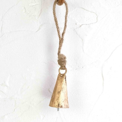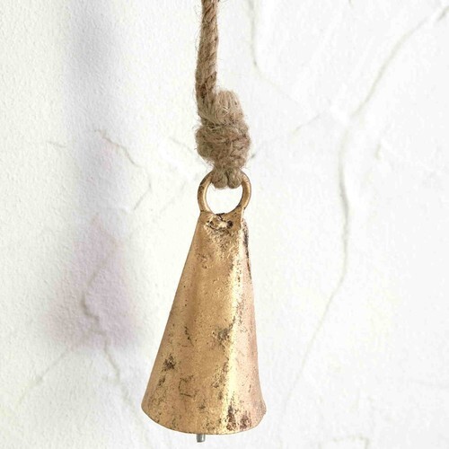 コーン型のベルがジュートひもでつながれています。