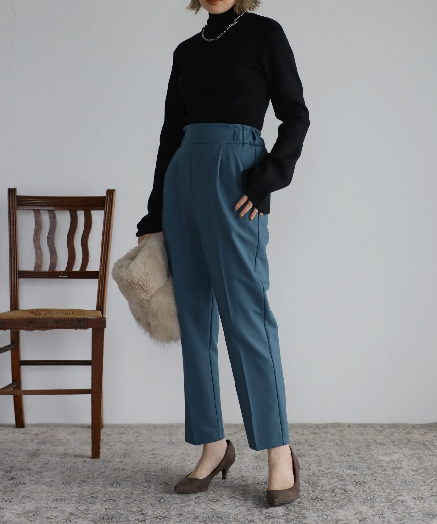 細かいリブ素材は体のシルエットを出し過ぎず、体型をカバーしてくれます。
