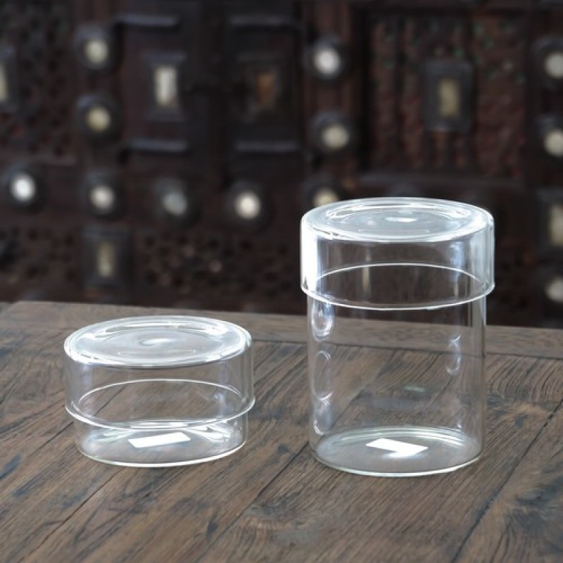 - 実験ガラスの様なレトロなデザインが特長のガラスキャニスター。茶葉や調味料、ピクルスなどの食品保存容器、バスソルトやコットンなどのバスグッズ用のオーガナイザー、ガーデニングのテラリウムポット等に使用できます。