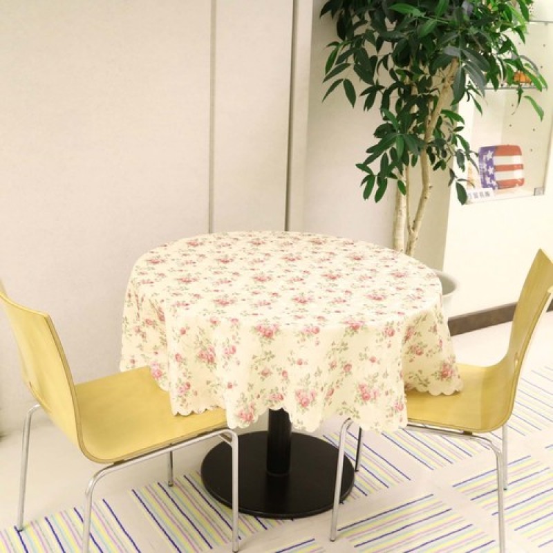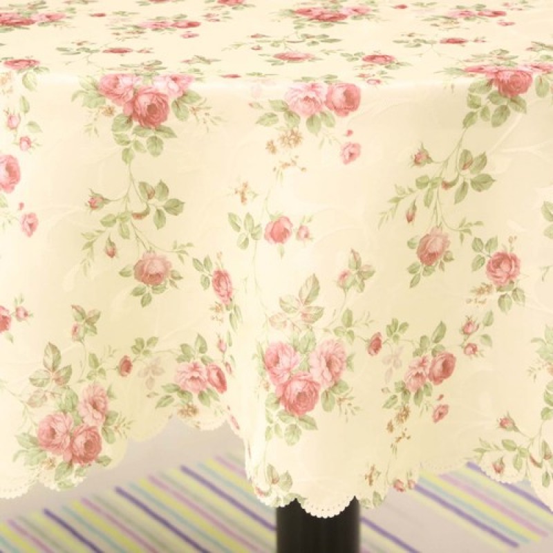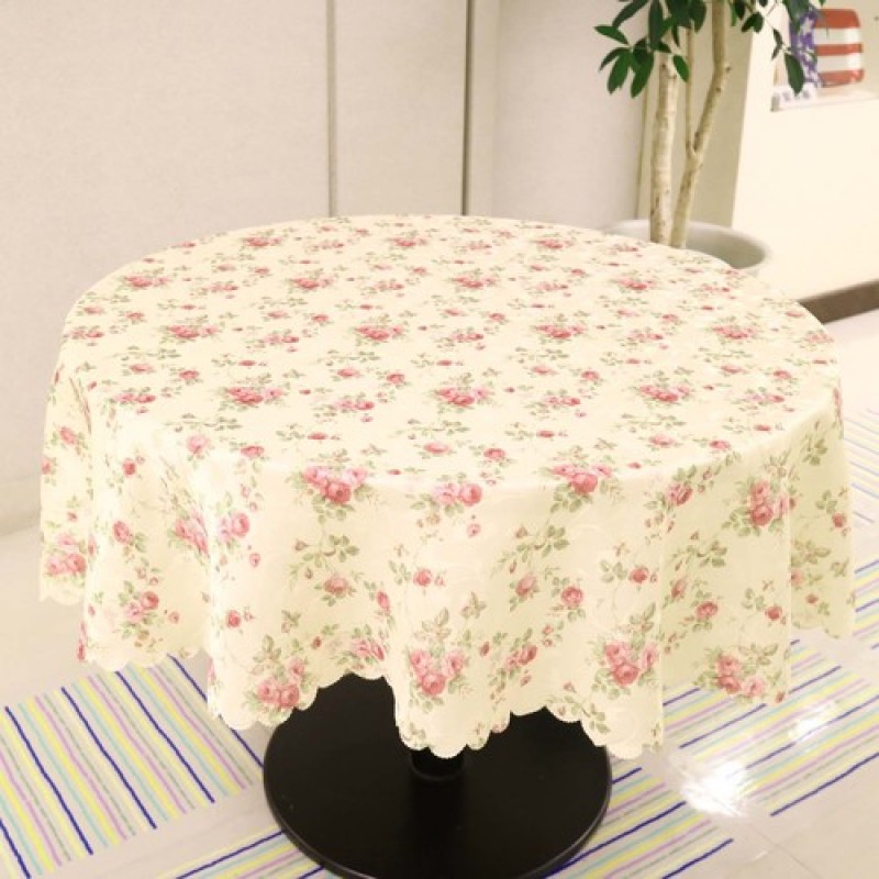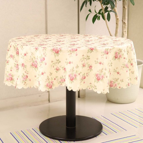 ローズ柄撥水テーブルクロスラウンド 150cm丸型(アイボリーベース)