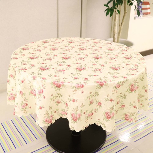 ローズ柄撥水テーブルクロスラウンド 150cm丸型(アイボリーベース)【セール中】