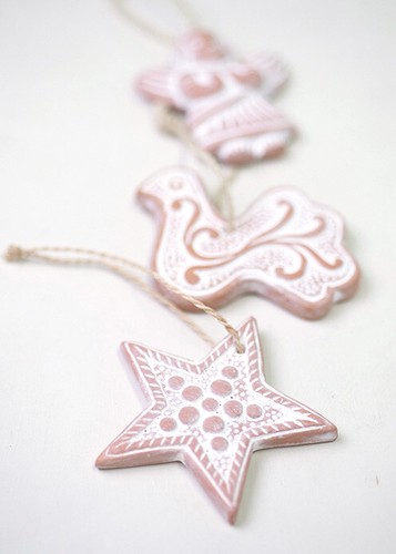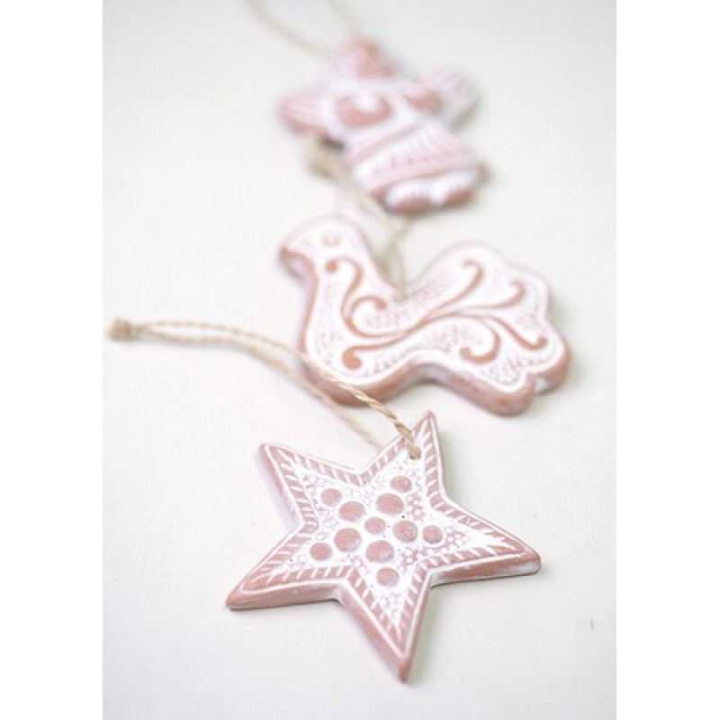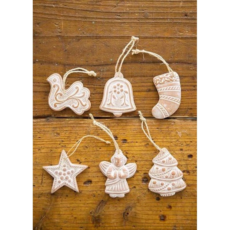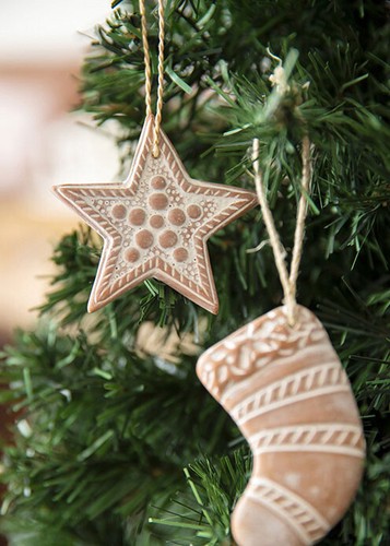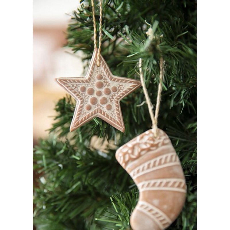 素朴なテラコッタ素材のぬくもりが伝わるクリスマスオーナメント。ツリーなどに自由に飾り付けてホームパーティを演出して。