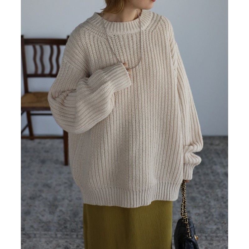 オーバーサイズのニットはどんなボトムスとも相性が良く、お尻もカバーできるコーデが可能です!
