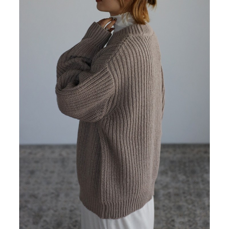 ボリュームのあるニットなので、タイトスカートや細身のデニムを合わせるとバランスよくまとまります。